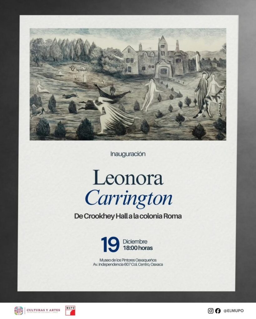 Por la tarde, a las 18:00 horas, el Museo de los Pintores Oaxaqueños (Mupo) abrirá sus puertas para la inauguración de la exposición “Leonora Carrington, de Crookhey Hall a la colonia Roma”, una muestra que rinde homenaje a una de las artistas más influyentes del surrealismo, cuya obra invita a explorar universos simbólicos y fantásticos.