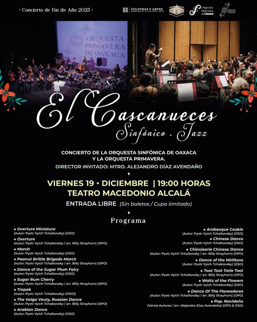 La jornada concluirá a las 19:00 horas en el teatro Macedonio Alcalá, donde la Orquesta Sinfónica de Oaxaca (OSO) cerrará su segunda temporada 2025 con una presentación especial junto a la Orquesta Primavera.
